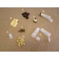 Accessori per cupolarve da acquistare separatamente: proteggi cella; porta larve senza cupolino; blocco di fissaggio; cupolini in plastica; gabbietta per regina con tappo nutritore.